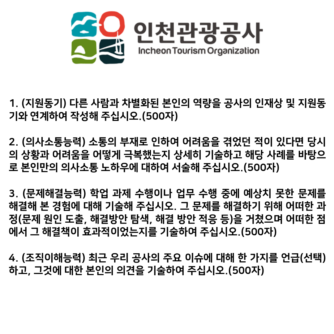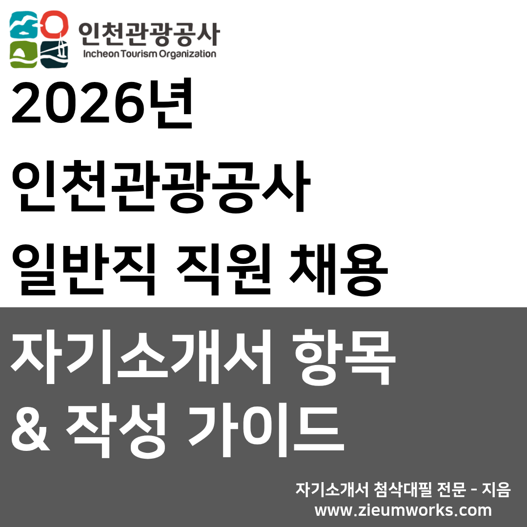 2026년 인천관광공사 일반직 채용 자기소개서 작성에서 간략한 가이드라인을 제시해드리고자 합니다.